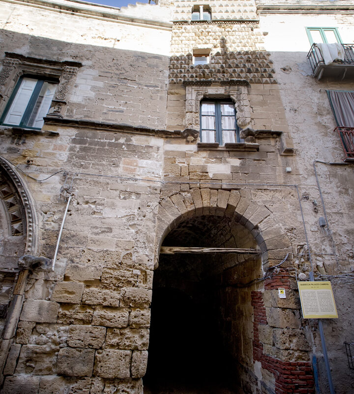 Il Palazzo della Giudecca, cosiddetto per la sua ubicazione nell’antico quartiere ebraico della città, fu costruito nei primi decenni del secolo XVI dalla famiglia Ciambra, il cui stemma raffigurante un cervo ai piedi di un albero è inserito nel portale ogivale dell’ingresso.